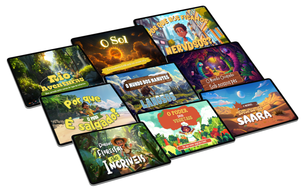 Além dos jogos interativos, o ‘Kids Games Educacional’ oferece um bônus incrível de 20 histórias infantis em PDF, que incentivam o amor pela leitura e a imaginação: